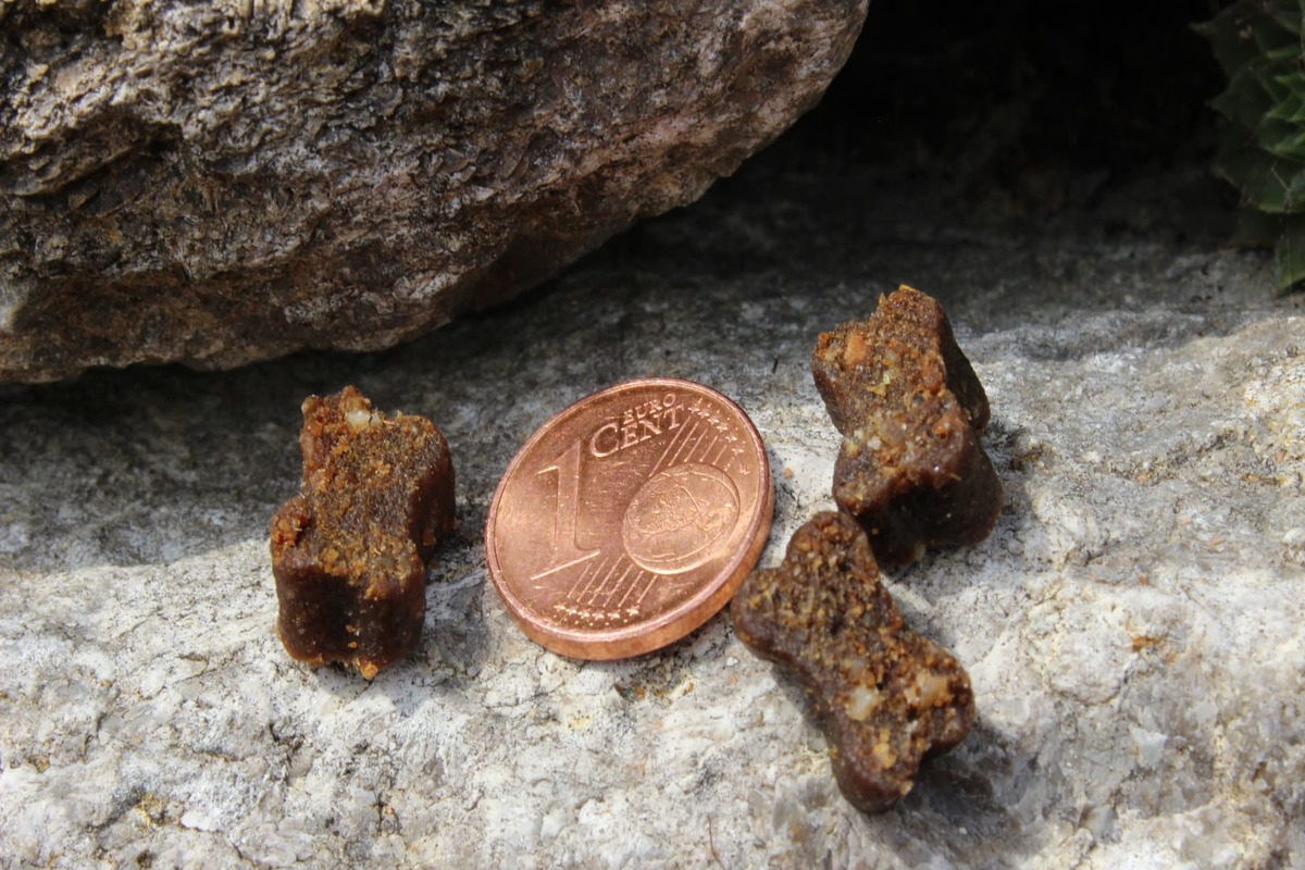 Ganz besonders kleine Leckerchen ! PANYS Minihappen mit frischem Wild, ganz nach unserem Motto „Ausgewogen und Lecker!“ Ein weiteres PANYS Highlight zum Belohnen und Trainieren für Ihren Liebling. Bei den Minihappen mit frischem Wild haben wir uns für eine glutenfreie Rezeptur mit Frischfleisch entschieden. Für ernährungssensible Hunde aufgrund des Singleproteins besonders gut geeignet. Selbstverständlich werden auch bei den PANYS Minihappen mit frischem Wild keine künstlichen Aroma- und Farbstoffe verwendet. Also viel Spaß beim Training und ihrem Liebling guten Appetit ! Sollte ihr Hund die Abwechslung lieben, haben wir mit drei verschiedenen Geschmacksrichtungen auch daran gedacht. Ein zufriedenes, glückliches Tier liegt uns doch allen am Herzen. Die einzige Frage die sich hier stellt: „Welche Geschmacksrichtung mag mein Liebling am liebsten?“ Bei drei verschiedenen Geschmacksrichtungen fällt die Wahl vielleicht schwer. Also bestellen Sie doch einmal alle drei Geschmackrichtungen und lassen Ihren Hund entscheiden, vielleicht mag er ja auch alle drei Sorten gleich gerne.