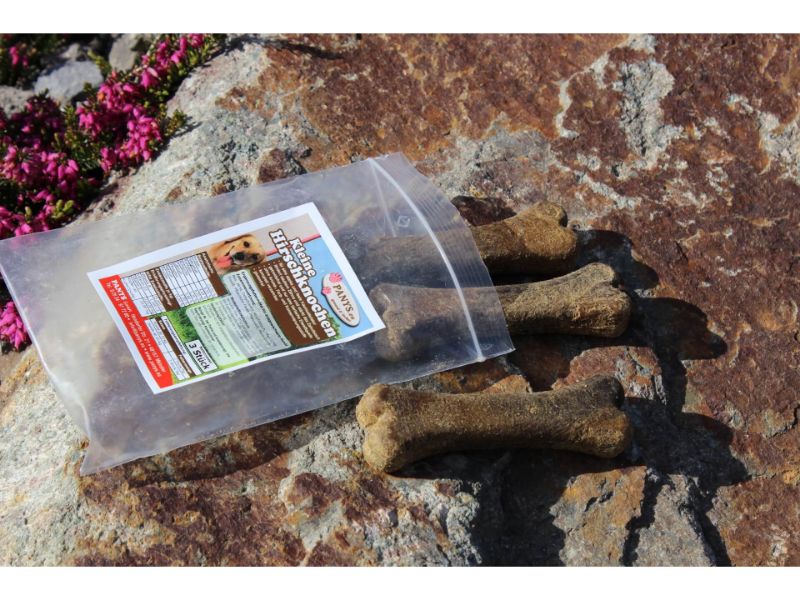 Kleine Hirschknochen PANYS kleine Hirschknochen unterstützten die natürliche Gebisspflege für kleine und mittelgroße Hunde. Optimales Kautraining ohne künstliche Aroma-, Farb- und Konservierungsstoffe. Die Hirschknochen eignen sich sehr gut für ernährungssensible Hunde. Sie sind glutenfrei, hart und auch für junge Hunde gut geeignet. Ihr Liebling kann die Kauknochen ruhig auf dem Teppich fressen ohne das Sie einen neuen Teppich brauchen, da die Knochen nicht stinken, nicht schmieren und komplett verzehrbar sind. Wir wünschen ihrem Liebling guten Appetit! Ein zufriedener, glücklicher Hund liegt uns doch allen am Herzen. PANYS kleine Hirschknochen gibt es im praktischen wieder erschließbaren Beutel. Drei kleine Hirschknochen pro Verpackungseinheit.