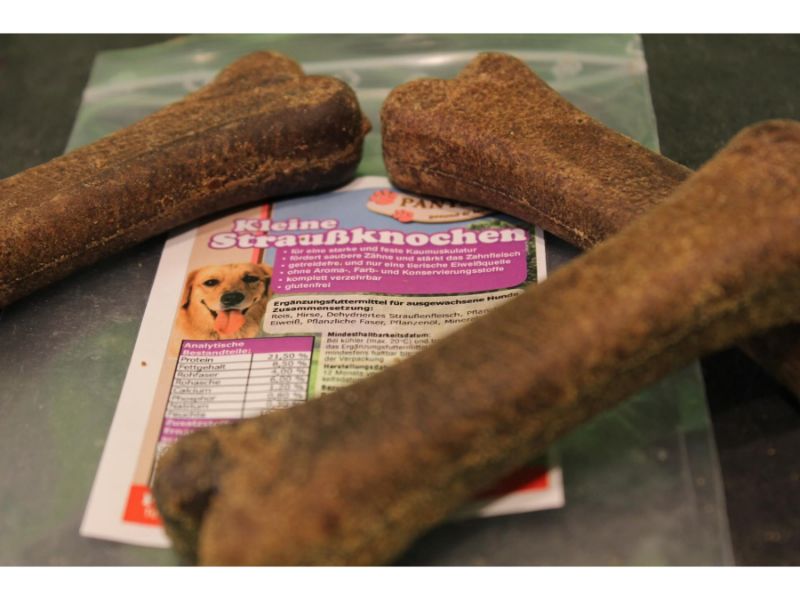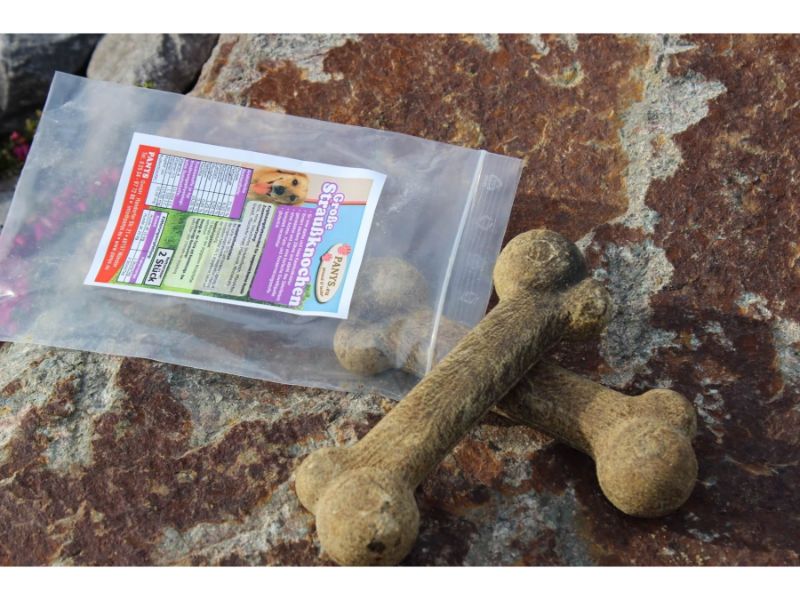 PANYS Kleine Straussenknochen unterstützten die natürliche Gebisspflege für kleine und mittelgroße Hunde. Optimales Kautraining ohne künstliche Aroma-, Farb- und Konservierungsstoffe. Die Straussenknochen sind auch sehr gut für ernährungssensible Hunde geeignet. Sie sind glutenfrei, hart und auch für junge Hunde gut geeignet. Ihr Liebling kann die Kauknochen ruhig auf dem Teppich fressen ohne das Sie einen neuen Teppich brauchen, da die Knochen nicht stinken, nicht schmieren und komplett verzehrbar sind.Wir wünschen ihrem Liebling guten Appetit ! Ein zufriedener, glücklicher Hund liegt uns doch allen am Herzen. PANYS kleine Straussenknochen gibt es im praktischen wieder erschließbaren Beutel. Drei Kleine Straussenknochen pro Verpackungseinheit.