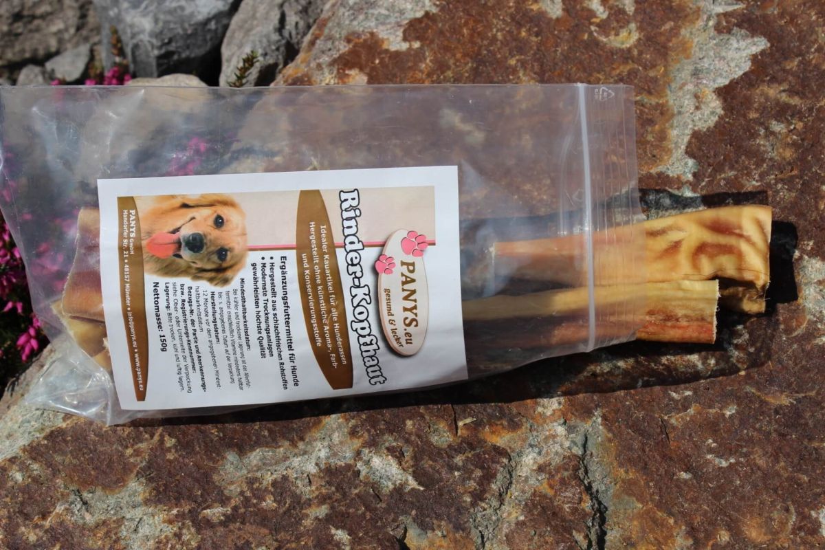 Rinderkopfhaut getrocknet (Erzeugnisse von Landtieren) für ausgewachsene Hunde. PANYS Rinderkopfhaut getrocknet - der ultimative Kauspaß besonders für ernährungssensible Hunde. Der Knabberspaß, der nicht auf die Hüfte geht! Hier hat Ihr Liebling mal etwas zum knabbern. Es ist wichtig für jeden Hund, die Kaumuskulatur zu trainieren. Außerdem kann dadurch die Zahnsteinbildung verhindert und die Kaumuskulatur gekräftigt werden.Wir wünschen ihrem Liebling viel Spaß beim Knabbern! Ein zufriedener, glücklicher Hund liegt uns doch allen am Herzen. Unsere getrockneten Kauartikel stammen von kontrollierten Schlachthöfen und alle Rohstoffe stammen von Tieren, die amtlich zum menschlichen Verzehr zugelassen sind. Modernste Trocknungsanlagen gewährleisten höchste Qualität. Die frische Ware wird bei 60 - 80 ° zwischen 5 und 7 Tagen getrocknet. PANYS Rinderkopfhaut gibt es im praktischen wieder verschließbaren 150 g Beutel. Sollte Ihr Liebling von der Rinderkopfhaut begeistert sein, können Sie diesen auch im 350 g Beutel bestellen.