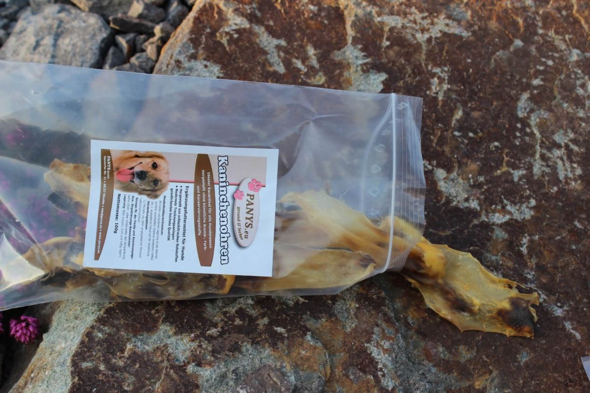 PANYS Kaninchenohren getrocknet für ausgewachsene Hunde - der ultimative Kauspaß - besonders für ernährungssensible Hunde. Der Knabberspaß, der nicht auf die Hüfte geht. Durch den Knabberspaß mit Kaninchenohren kann die Zahnsteinbildung verhindert und die Kaumuskulatur gekräftigt werden. Wir wünschen ihrem Liebling viel Spaß beim Knabbern! Ein zufriedener, glücklicher Hund liegt uns doch allen am Herzen. Unsere getrockneten Kauartikel stammen von kontrollierten Schlachthöfen und alle Rohstoffe stammen von Tieren, die amtlich zum menschlichen Verzehr zugelassen sind. Modernste Trocknungsanlagen gewährleisten höchste Qualität. Die frische Ware wird bei 60 - 80 ° zwischen 5 und 7 Tagen getrocknet. PANYS Kaninchenohren getrocknet gibt es im praktischen wieder verschließbaren 100 g Beutel.