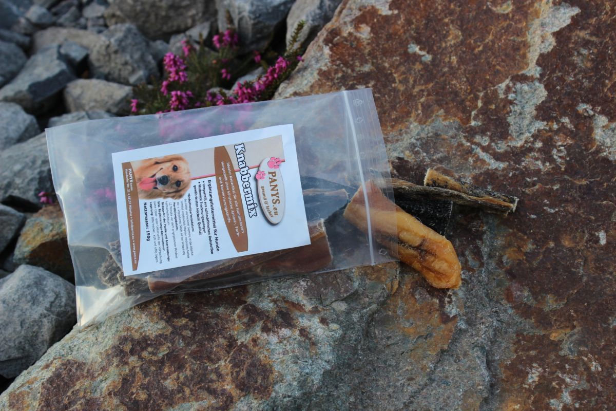 Knabbermix: Knabbermix getrocknet für ausgewachsene Hunde. Hier hat Ihr Liebling mal etwas zum knabbern, das verringert die Zahnsteinneubildung und kräftigt die Kaumuskulatur.  Wir wünschen ihrem Liebling viel Spaß beim Knabbern! Ein zufriedener, glücklicher Hund liegt uns doch allen am Herzen. Unsere getrockneten Kauartikel stammen von kontrollierten Schlachthöfen und alle Rohstoffe stammen von Tieren, die amtlich zum menschlichen Verzehr zugelassen sind. Modernste Trocknungsanlagen gewährleisten höchste Qualität. Die frische Ware wird bei 60 - 80 ° zwischen 5 und 7 Tagen getrocknet. PANYS Knabbermix gibt es im praktischen wieder verschließbaren 150 g Beutel. Sollte Ihr Liebling von dem Knabbermix begeistert sein, können Sie diesen auch im 350 g Beutel bestellen.