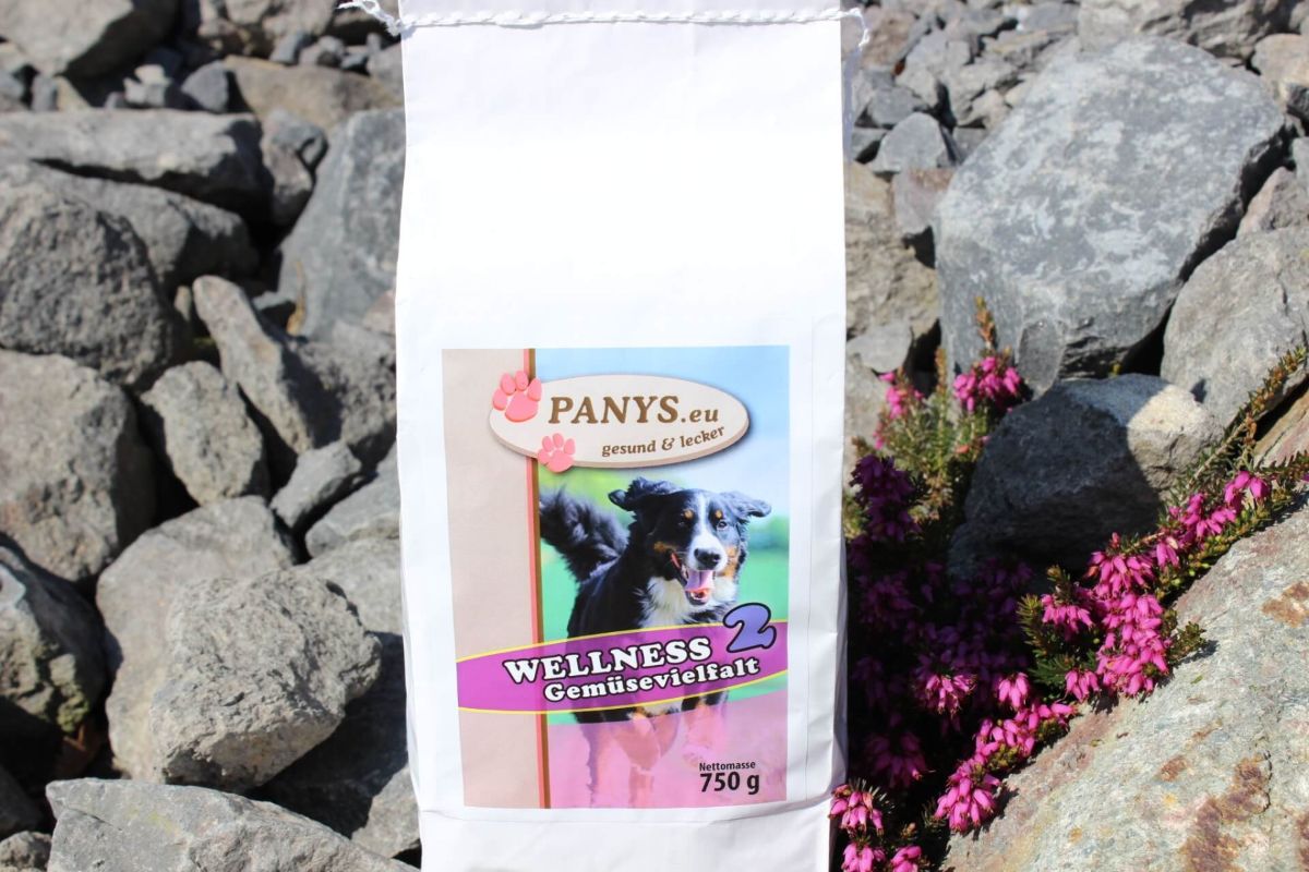 PANYS Wellness Gemüsevielfalt gibt es in zwei verschiedenen Größen. Zum Testen oder auch für kleine Hunde, haben wir die Wellness Flockenmischung in kleine Beutel (0,75 kg) verpackt. Sollten Sie und Ihr Liebling mit der Flockenmischung zufrieden sein, können Sie diese auch im 2,5 kg Sack bestellen. Auch für ausgewachsene Katzen im Verhältnis (80 % - 90 % Fleisch und 10 % - 20 % Gemüseflocken) geeignet.
